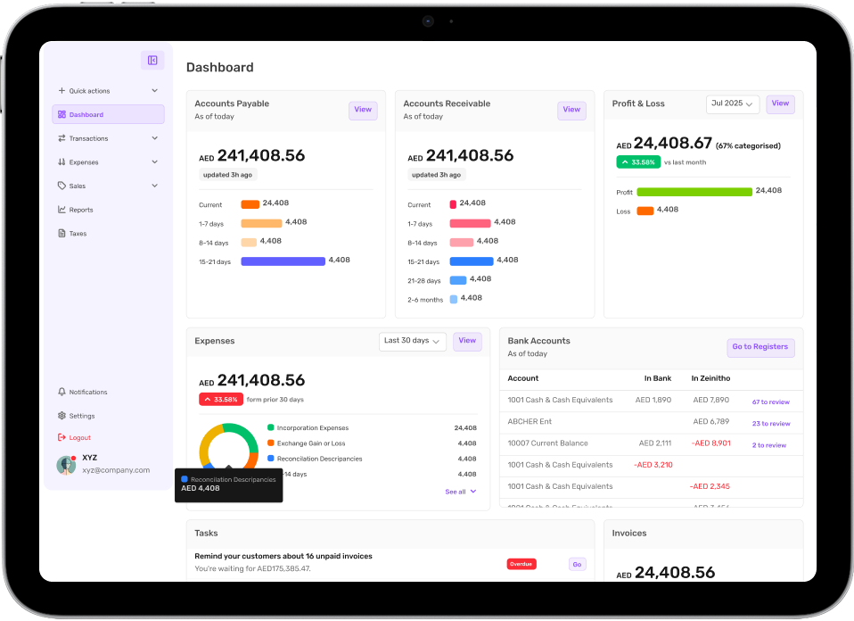 Build a comprehensive set of core accounting functionalities, including accounts payable management and on-demand financial reporting.