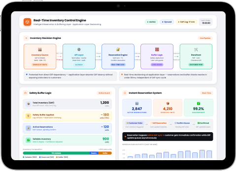 Secondly, the company operated on a SAP-based ERP that tracked store-level inventory. However, it was built for physical retail operations such as purchase orders, goods receipt, and inter-branch transfers. Inventory data had a 15–30 minute sync lag, and the system lacked support for online reservations, pick-pack-ship workflows, and a mechanism to expose store-specific inventory to a digital storefront. Building directly on top of this would have meant inheriting these limitations.