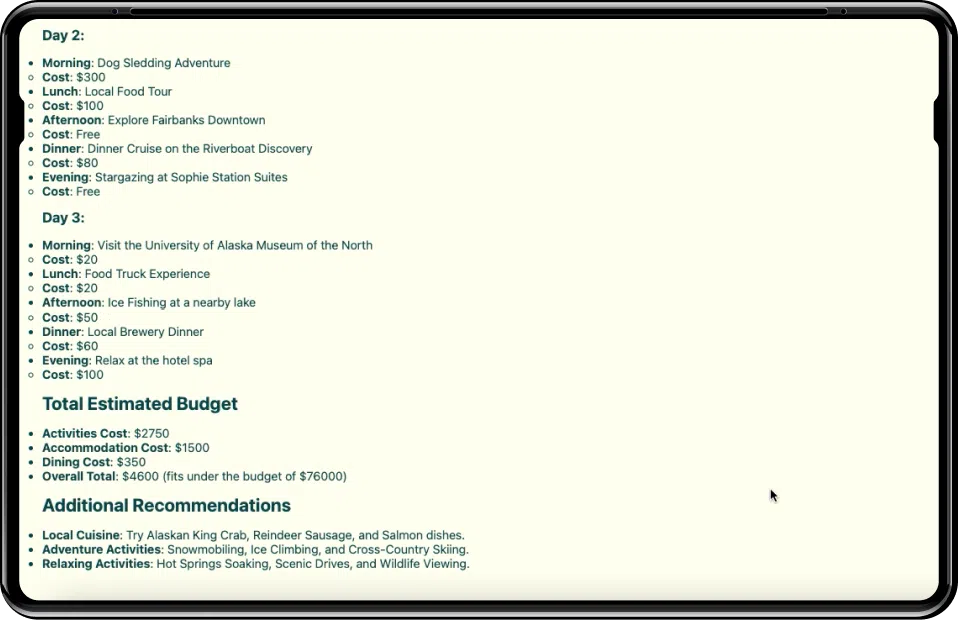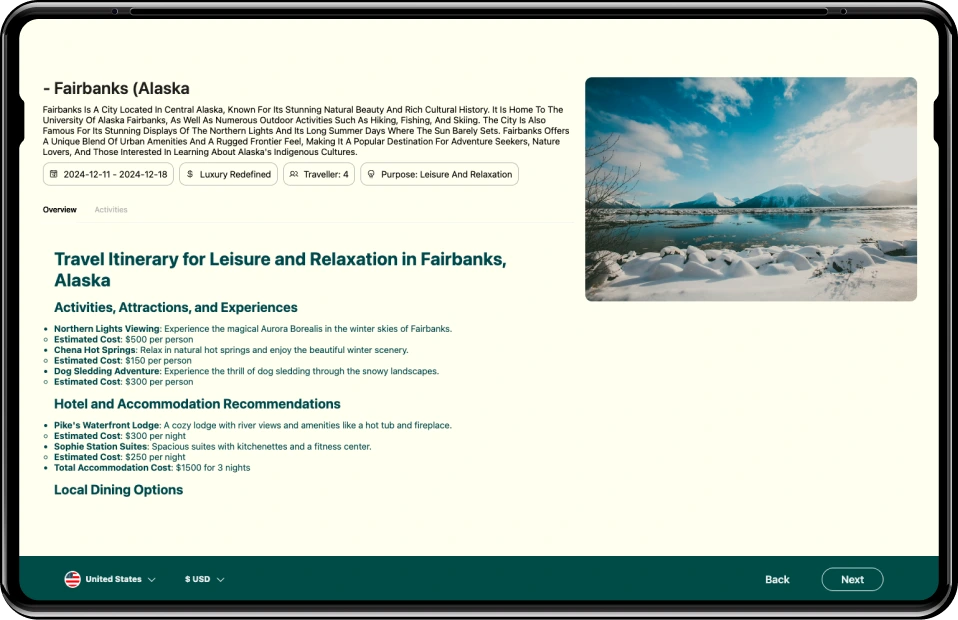 Provide tailored itineraries and recommendations based on user preferences, interests, and budget